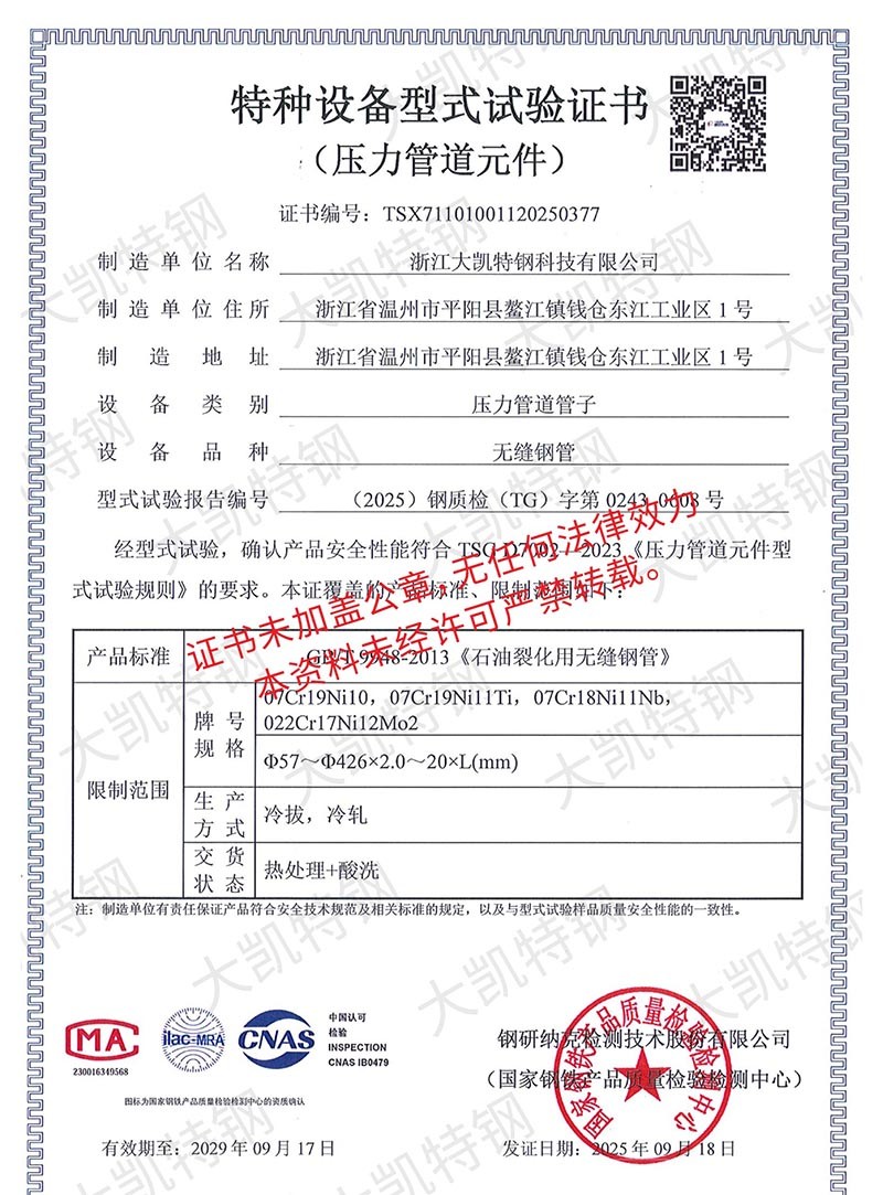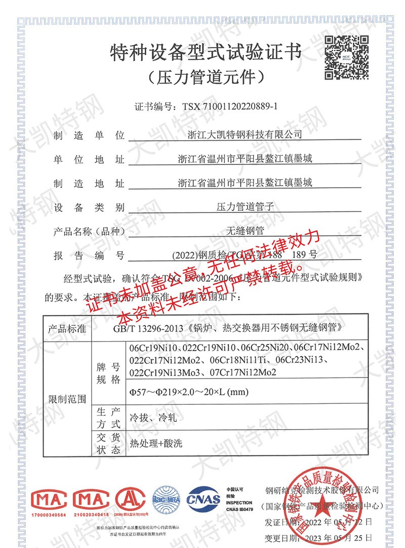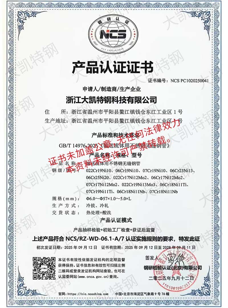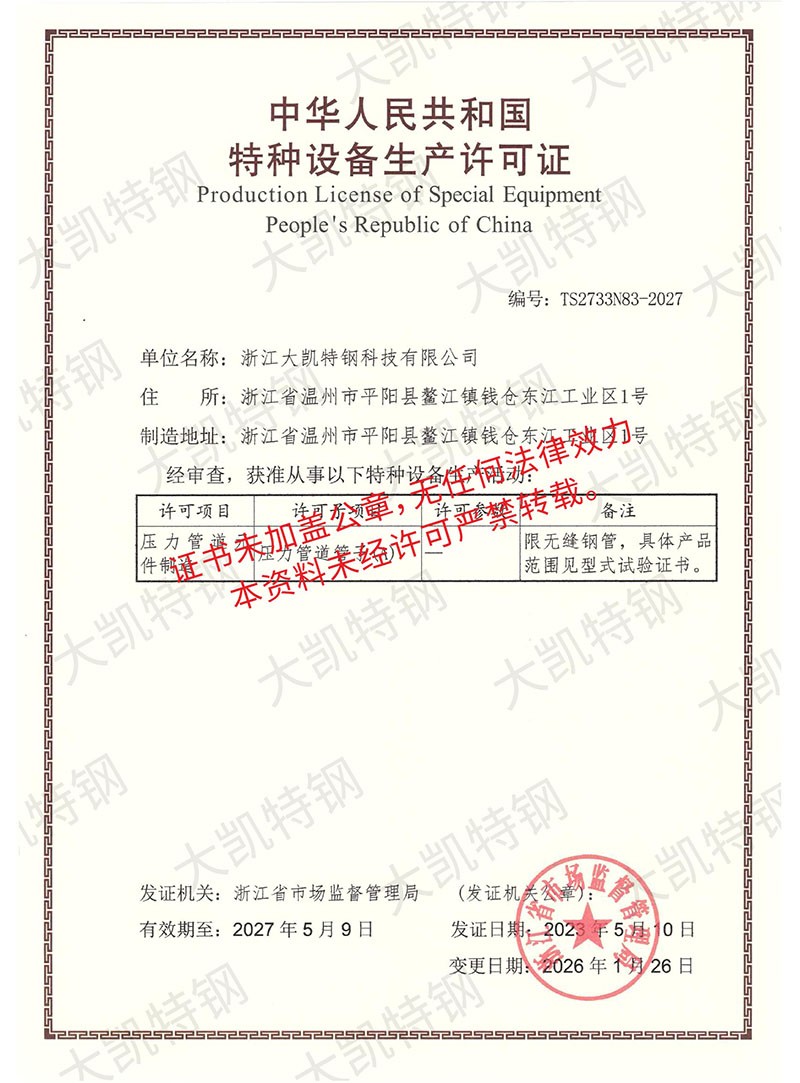 Zhejiang Dakai Stainless Steel Co., Ltd. is located in Mocheng Industrial Zone, Aojiang Town, Pingyang County, Wenzhou City, Zhejiang Province. The factory covers an area of 75 mu, specializing in the production of stainless steel, and operates various materials of round steel, seamless pipe, welded pipe, fastener (screw), square pipe, channel steel, angle steel, plate, flange, elbow, head, valve, medicine machine (tank), block pressure water pipe and other business.